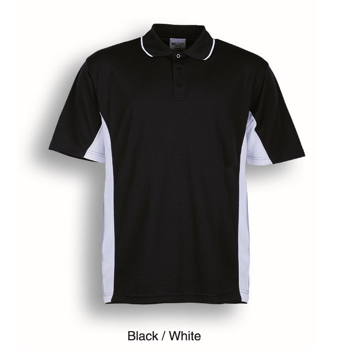 Panel Polo With Piping And Striped Contrast Collar. 100% Breezeway Polyester With Sun Protection And Anti Bacterial Treatment. 160gsm.