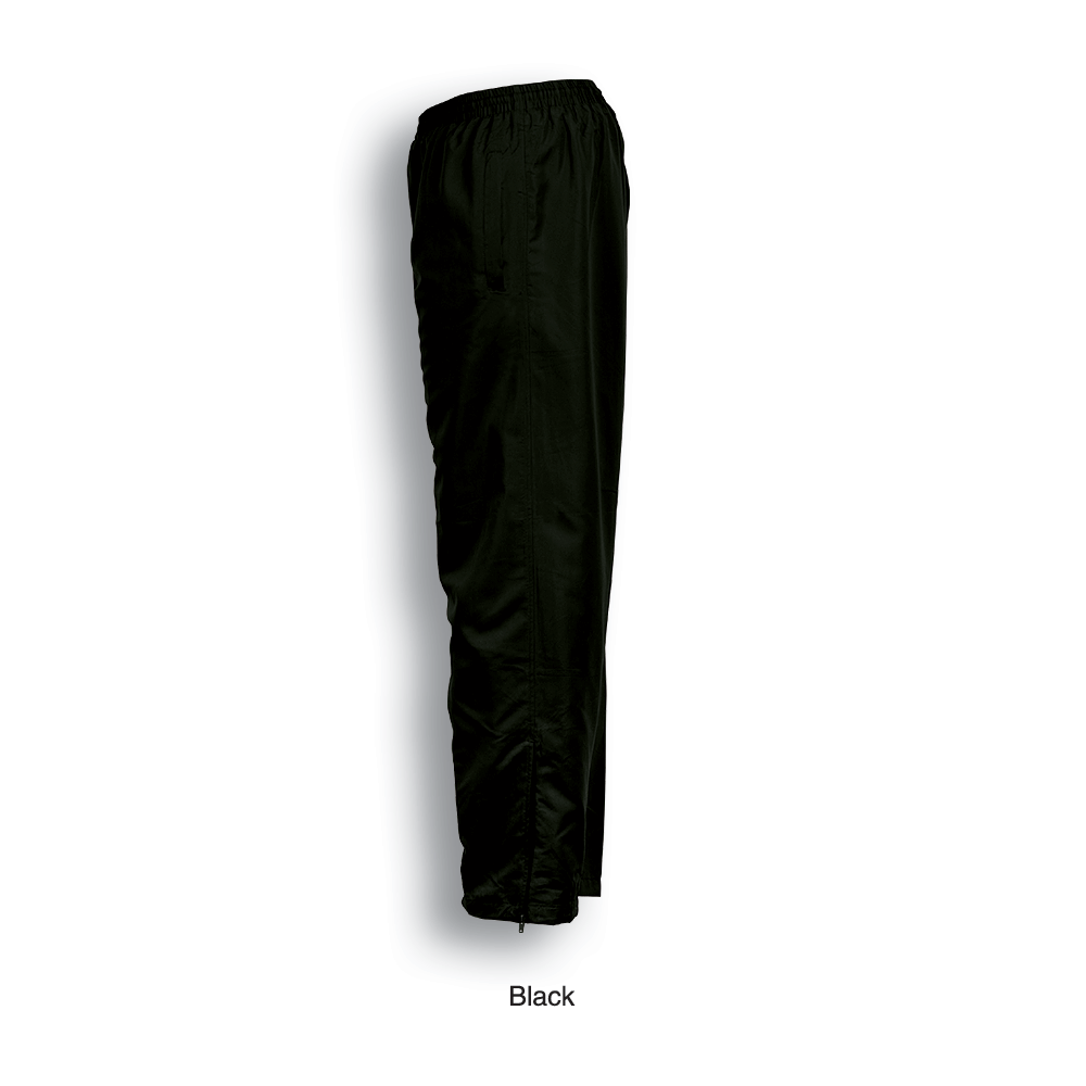 Track Suit Pants With Zipper At Ankle Section. 100%Gsm 100% Polyester Peach Skin Microfibre. 140Gsm 75% Polyester 25% Cotton Lining.