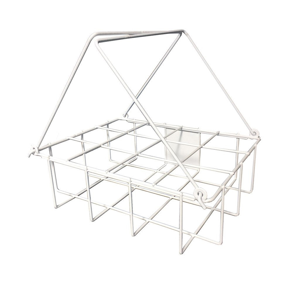 Strong plastic coated wire drink holder & carrier, holds our drink bottles and other standard 750m bottles. Compact space saving design with fold down handles.
