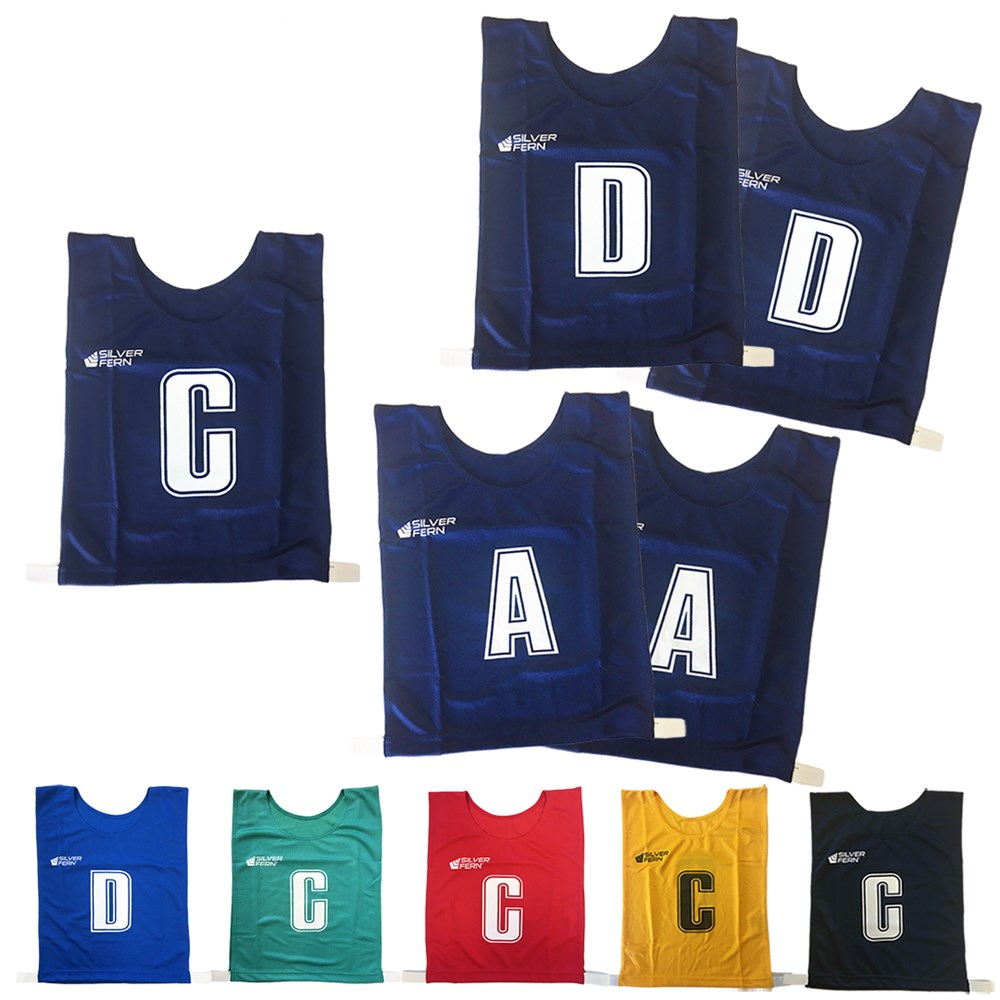 Comfortable polyester over the shoulder bibs with elastic sides and printed position letters. Made from the same fabric as our netball uniforms.