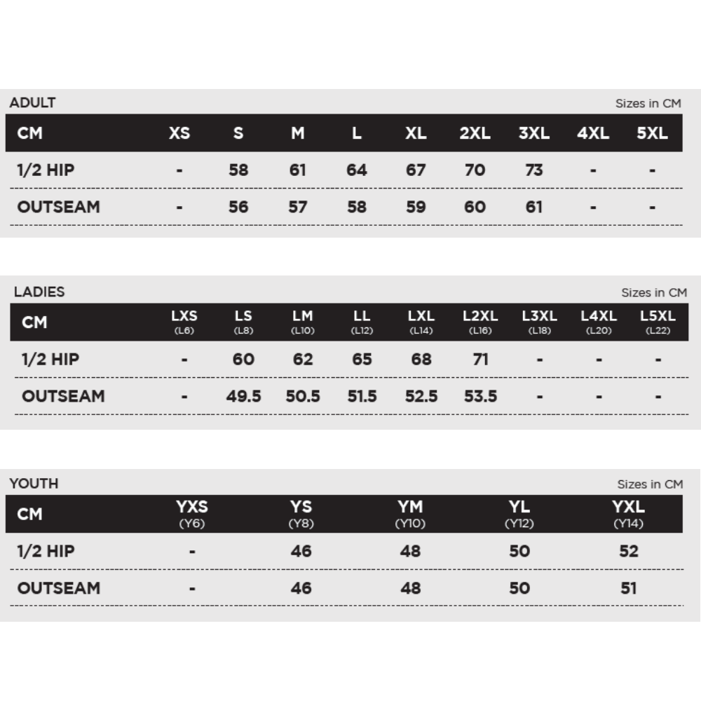 Standard Sizing: Adult: XS-5XL / Ladies: LXS-L5XL / Youth: YXS-YXL