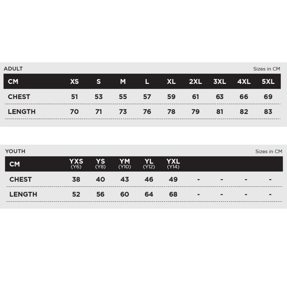 Standard Sizing: Adult: XS-5XL / Youth: YXS-YXL